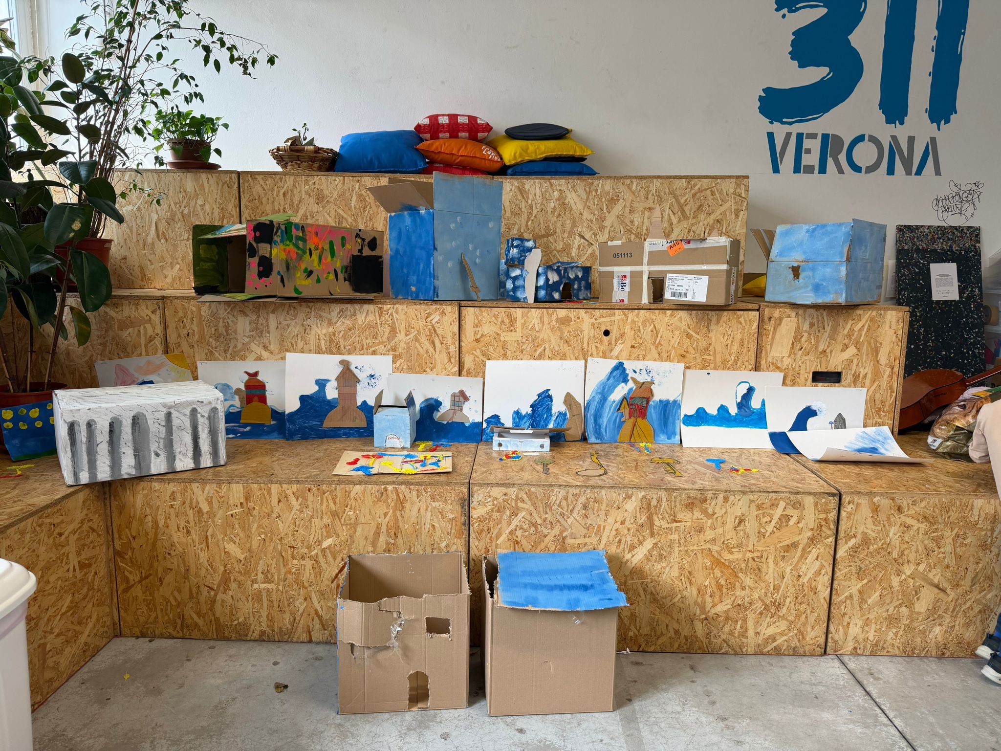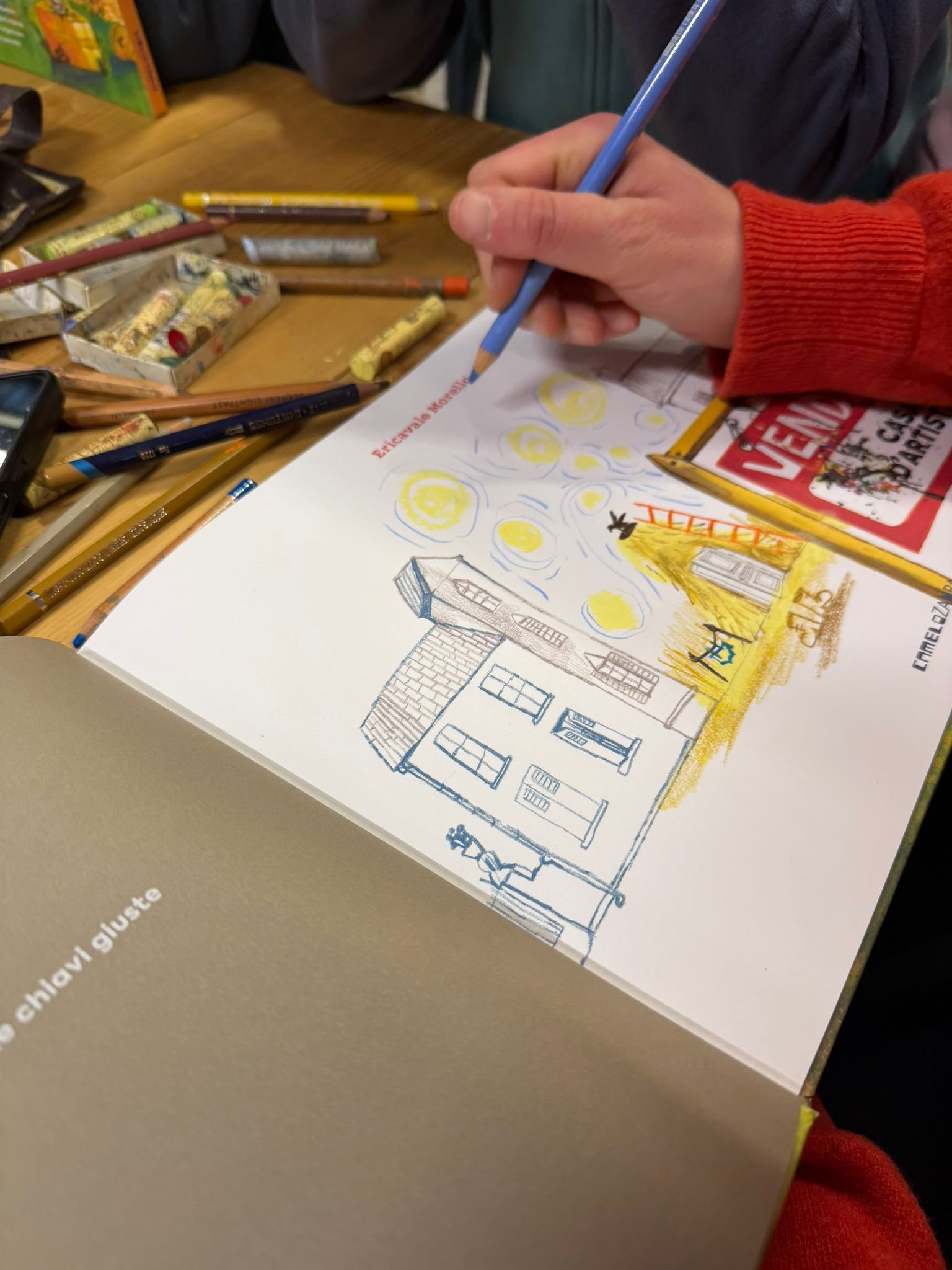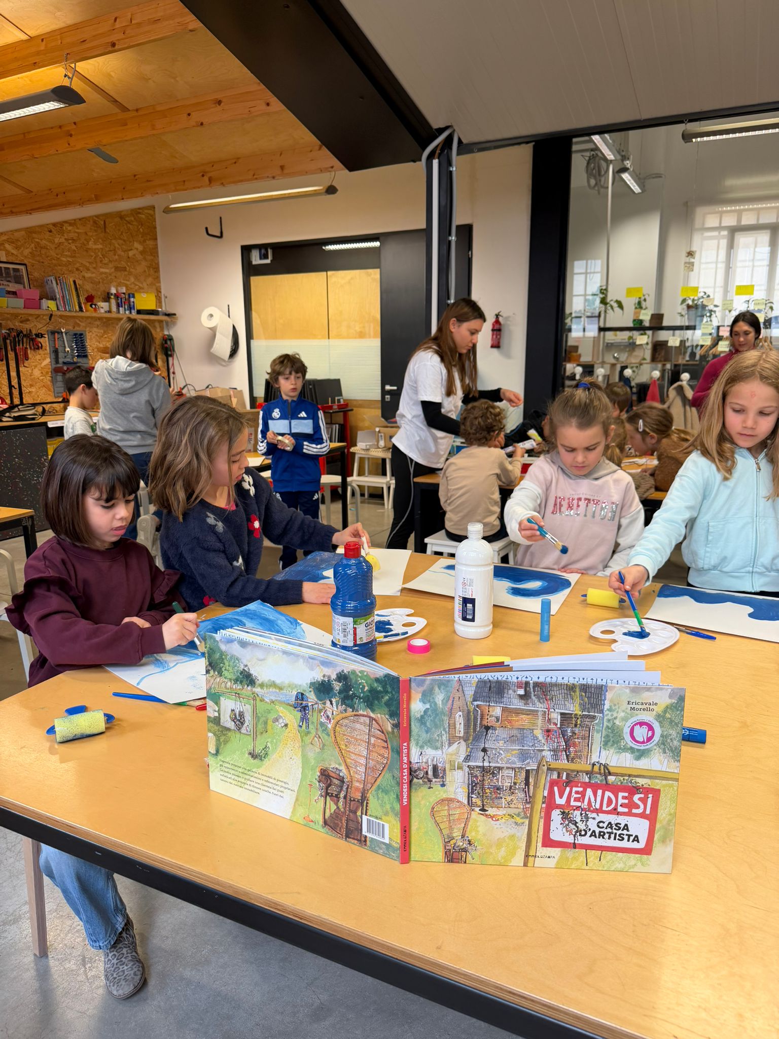 Oggi abbiamo avuto il privilegio di lavorare con lei per ben tre ore, entrando nel suo mondo creativo e lasciandoci guidare tra case, artisti e traslochi fuori dall’ordinario. Un viaggio che dalle pagine dei suoi libri si è trasformato in esperienza concreta, fatta di idee, materiali e sperimentazione.